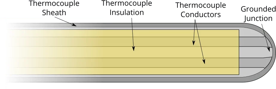 - Construction: In a grounded junction thermocouple, the sensing junction (where the two dissimilar metals are joined) is physically connected to the probe’s sheath.
